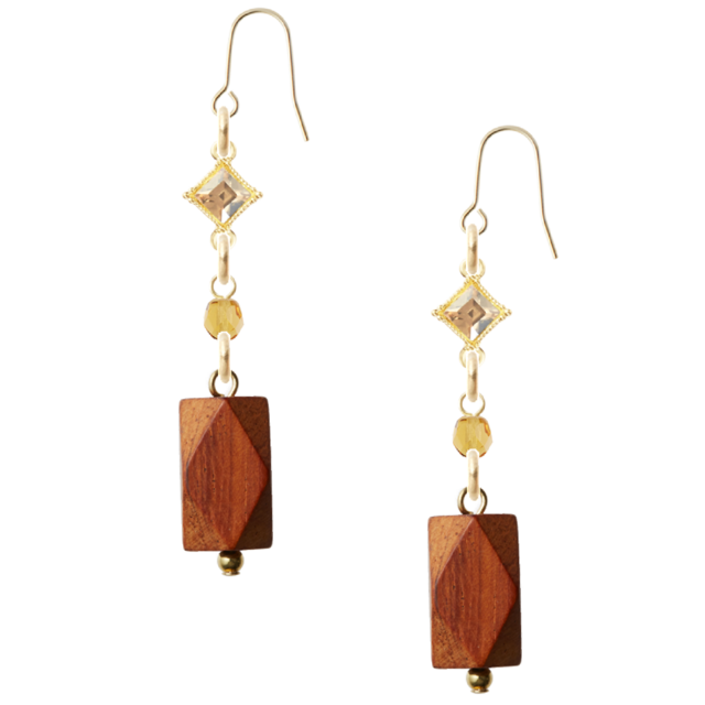 ウッドビーズとスワロフスキーのピアス(Yellow)7MEN侍